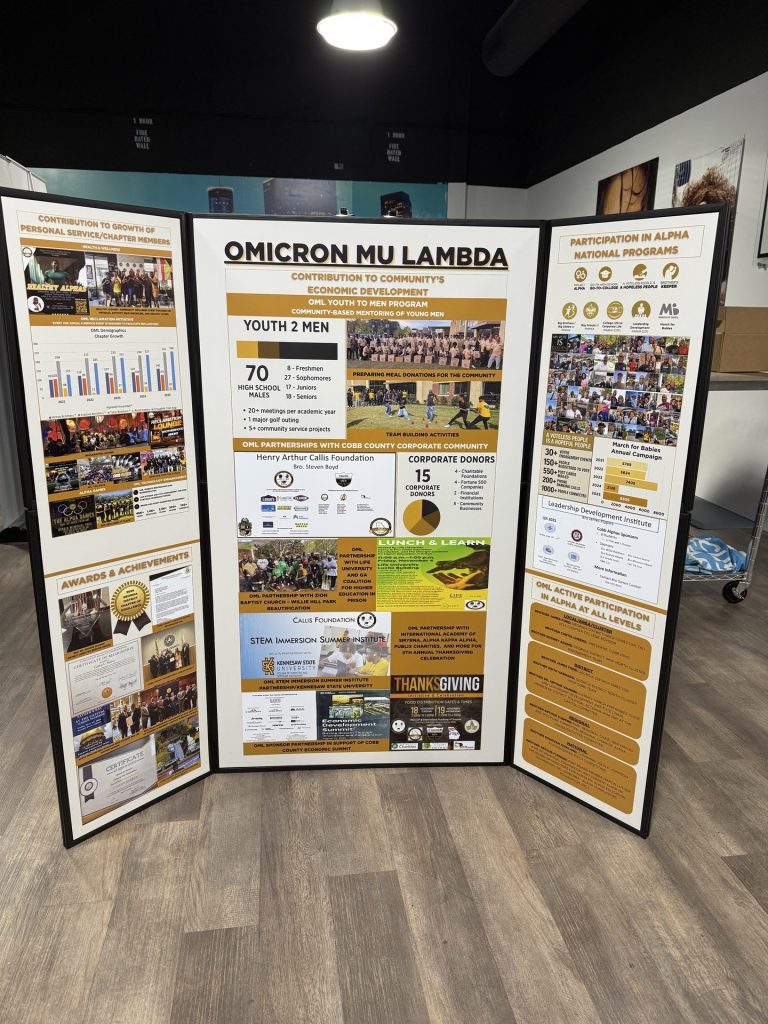 Under the leadership of Bro. President Harold Dickerson and Vice President Adolphus “AD” Drain, our Chapter of the Year committee — Brothers Arthur Fleming, Rodney Adams, and James Pippins — assembled an annual report and display that stood out among the 25 Alumni Chapters of Alpha Phi Alpha across Georgia.