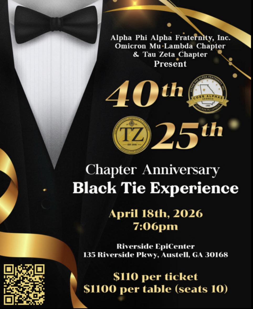 Join the distinguished brothers of Alpha Phi Alpha Fraternity, Inc. as Omicron Mu Lambda celebrates 40 years of excellence, brotherhood, and unmatched service to Cobb County and beyond.